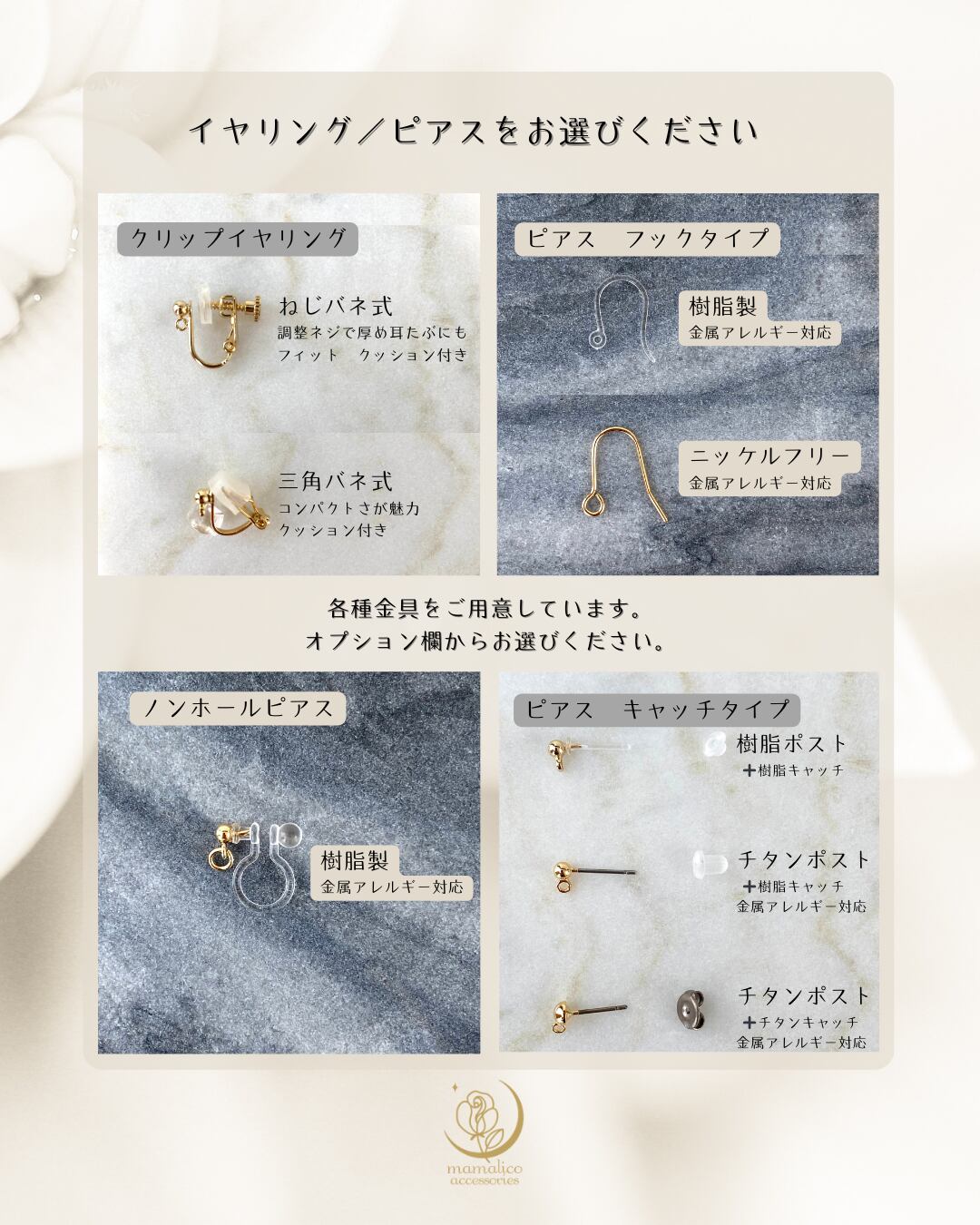*天然素材のため、色合いや模様には個体差があります。天然石ならではの個性をお楽しみください。